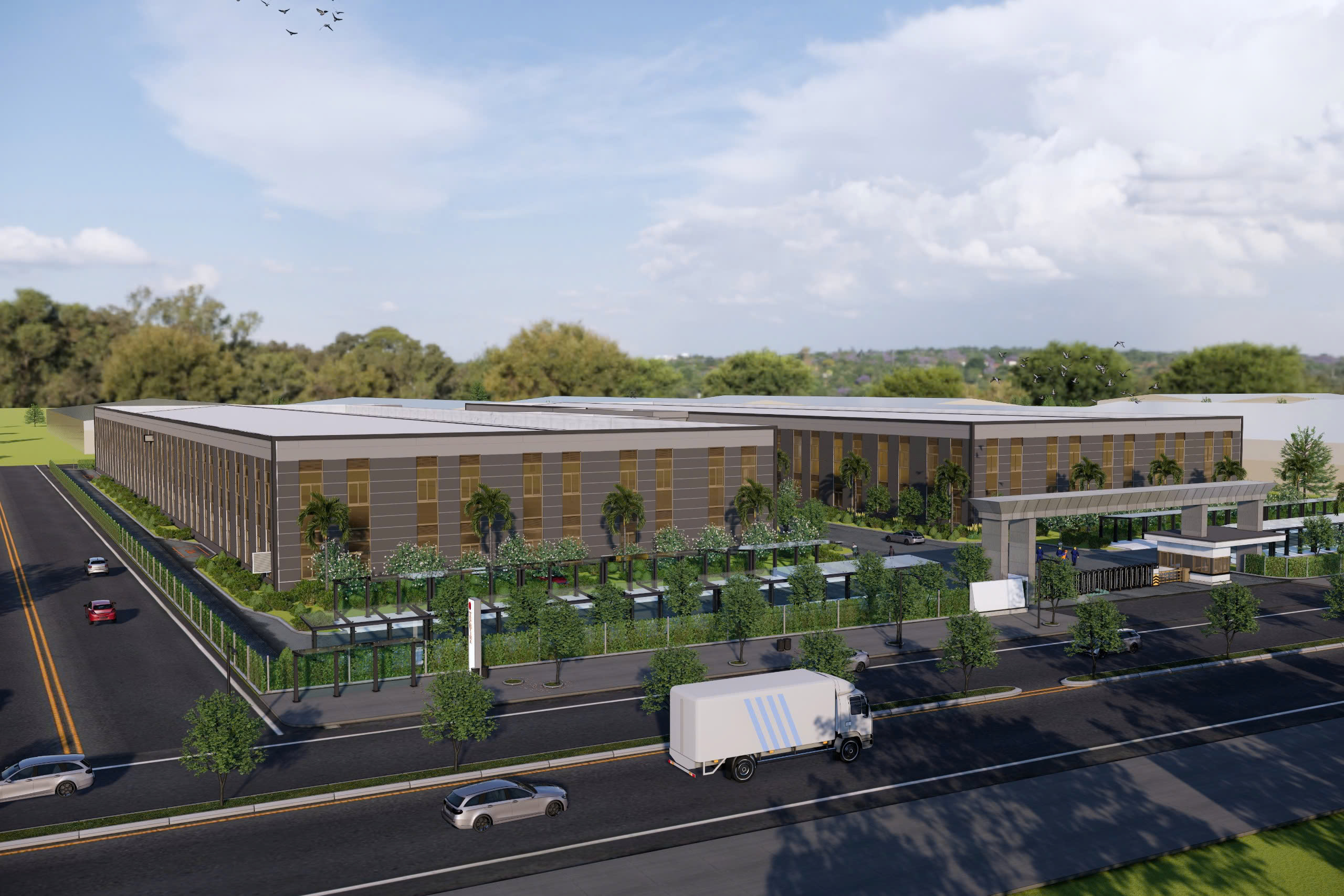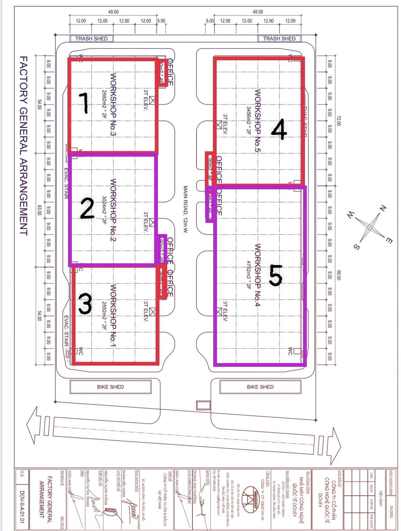 - Diện tích Khuôn viên 30.000m2; dựng mới 2block nhà xưởng 8.200m2 * 2 tầng; văn phòng 270m2 * 4 tầng