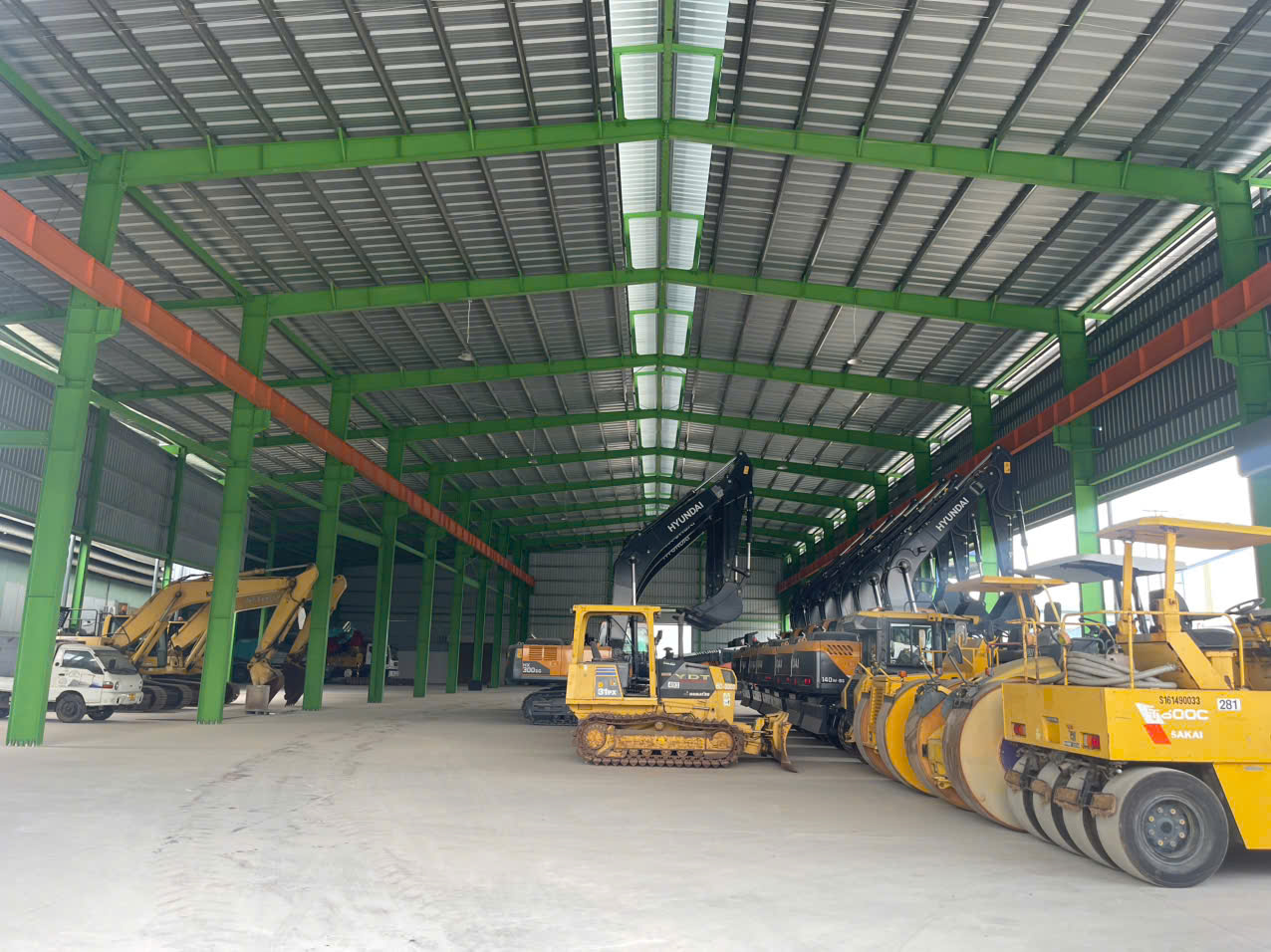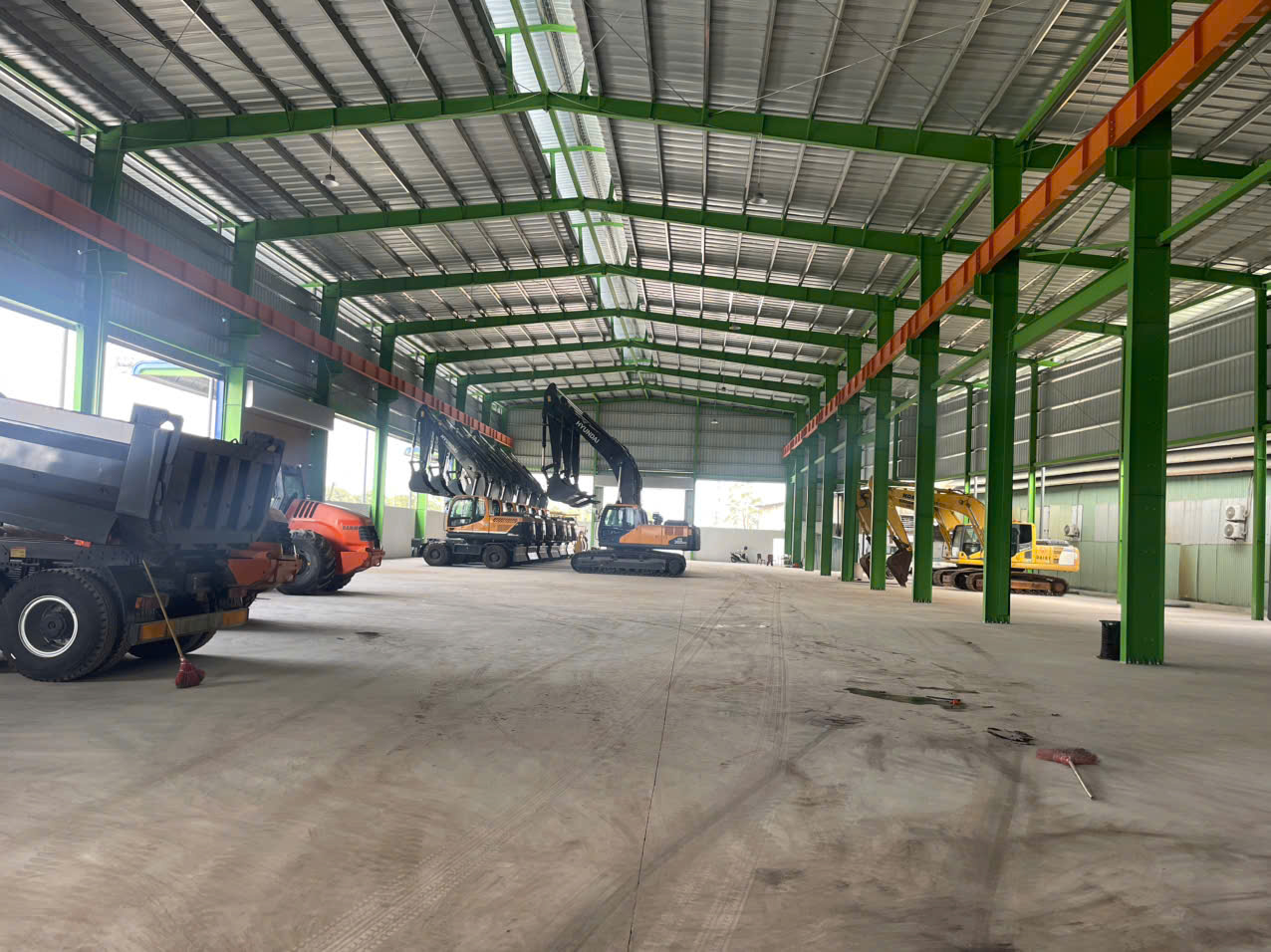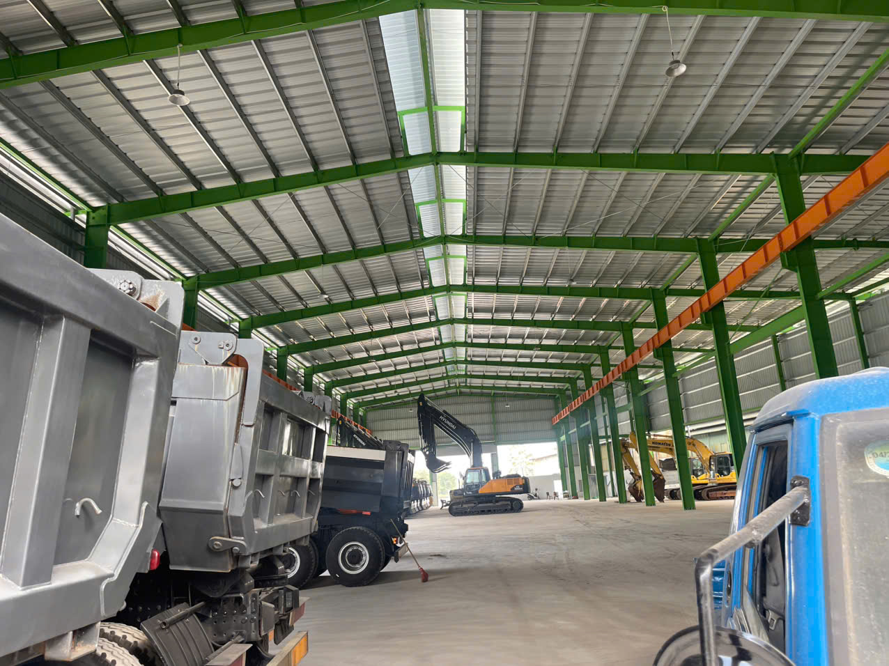 - Xây dựng Khung zamil cao 14m, đủ khả năng chịu lực lắp cẩu trục 10 tấn. Điện 3 pha. Nước sạch. Xe Cont lùi vào trong xưởng
