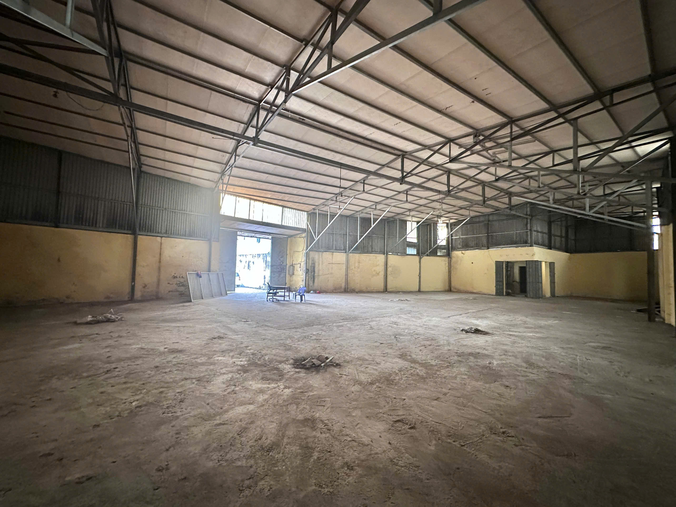 - Xây dựng Mái cao 6,5m. Tường gạch bao, mái tôn chống nóng. Điện 3 pha. Nước sạch. Xe Cont đỗ cửa.